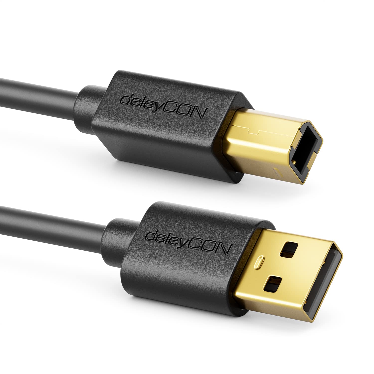 - deleyCON USB 2.0 High-Speed Kabel // Datenkabel / Druckerkabel // Hochwertige, mehrfache Schirmung für schnelle, störungsfreie Datenübertragung // Passgenaue, stabile USB-Stecker