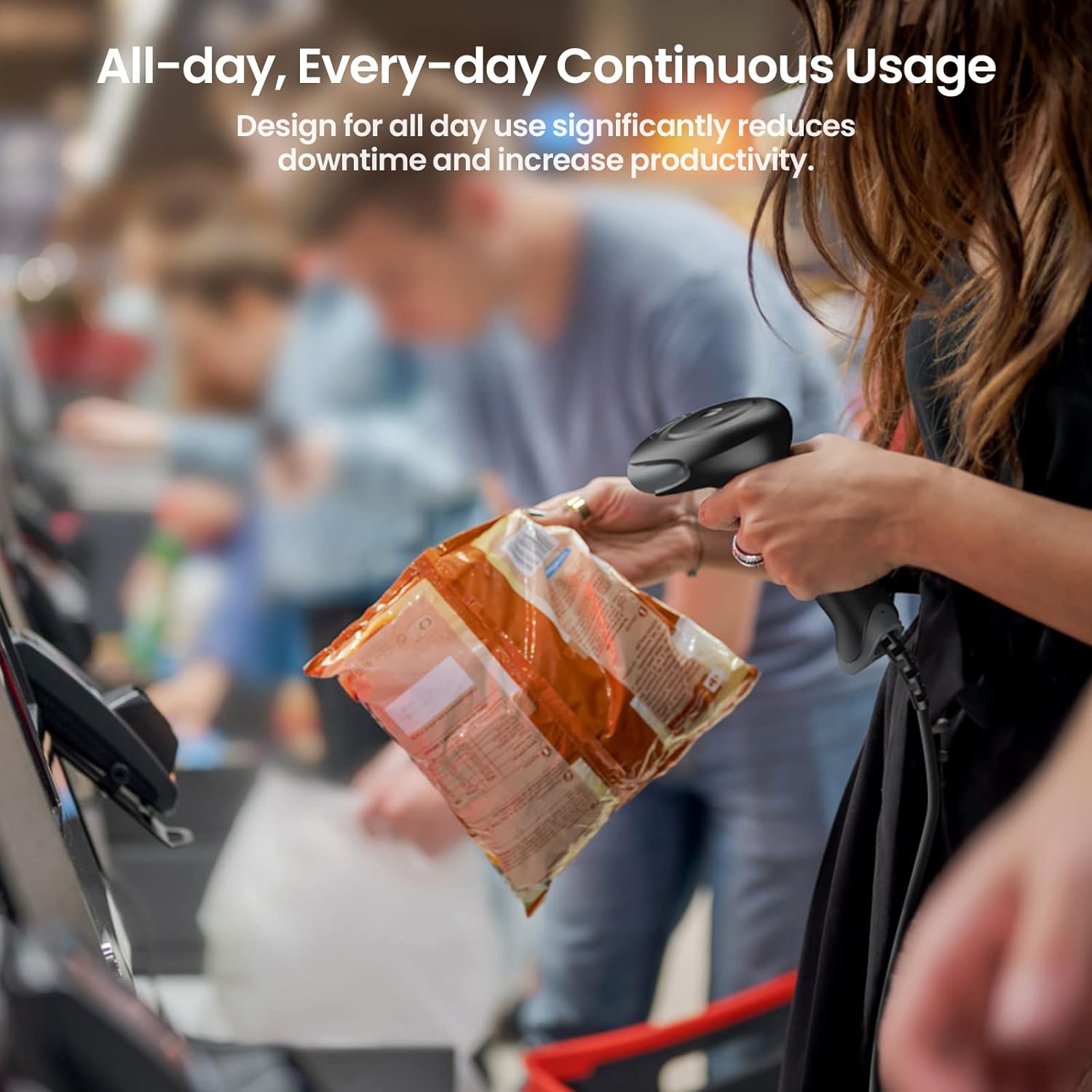 - 24 Hours All Day Working: Dieser USB-Barcodescanner ist für den kontinuierlichen Einsatz den ganzen Tag lang konzipiert, da er immer für den nächsten Scan bereit ist, was die Ausfallzeit erheblich reduziert, den Kundenservice leicht verbessert und die Produktivität erhöht. Es kann in Supermärkten, Convenience Stores, Lager, Bibliothek, Apotheke, Einzelhandelsgeschäft für Dateiverwaltung, Bestandsverfolgung und POS, etc. verwendet werden